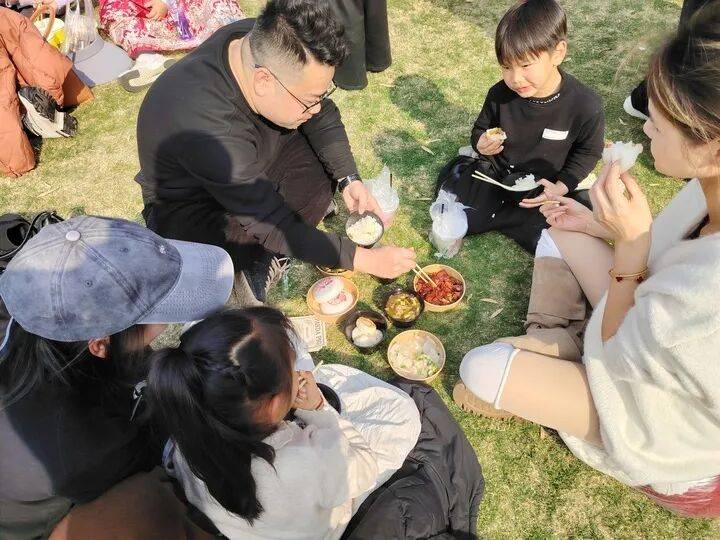 17日上午,记者在该牧场的“杀猪宴”活动现场看到,牧场先为游客们展示了杀年猪、祭猪神等地方过年民俗文化,然后将红烧肉、猪血汤等“杀猪菜”端了上来,请游客们一一品尝。活动最后,游客们排队领取一份份金华的“杀猪菜”,然后以家庭为单位,各自在草坪上席地而坐围成一圈品尝和就餐。一位中年男子品尝了“杀猪菜”后感慨地对记者说:“香!比外面的‘杀猪菜’香多了,这在外面是吃不到的!”有位男子还秀恩爱,用筷子夹起一块红烧肉喂给妻子品尝。
