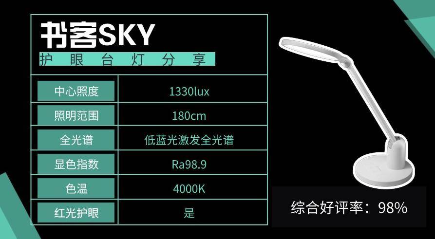 为了解决市面上百元护眼台灯护眼效果不足的问题,书客sky坚守了一直以来「明·护·广·养 」四重守护理念,通过十年以上的护眼研发经验,突破了传统照明技术的局限,专研出SunSilk™护眼芯片和5域环控光学系统的创新性组合,通过高密度导光板与多层扩散膜组合,结合类自然光谱智能驱动,形成多维度光线调节机制。结合DT多维漫射2.0技术,光线在发出的过程中经过精密漫射与动态校正,实现全方位柔和覆盖。它家创新设计了RRT2.0硬核养眼黑技术,相比传统的护眼台灯,能够更加精准的抑制住400-450nm有害高能蓝光,将红光效果增强至极限,每天“三分钟”即可为眼部输送养分,也正因如此,书客sky成为了百元价位深度护眼的理想之选,护眼性能使用非常卓越!
