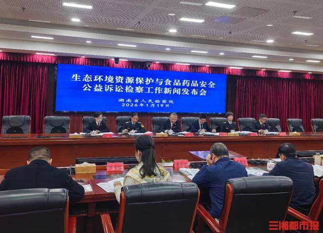 三湘都市报1月19日讯(文/视频 全媒体记者 王智芳 通讯员 吕亮 黄驰宇)1月19日,湖南省人民检察院召开新闻发布会,交出2025年度生态环境资源保护与食品药品安全领域公益诉讼“成绩单”。省检察院检委会专职委员罗青介绍,湖南检察机关2025年共立案办理公益诉讼案件5147件,通过审前程序、提起诉讼等方式,累计索赔生态环境损害赔偿金、食药安全惩罚性赔偿金等共计4.55亿余元,26件案例入选全国典型案例。