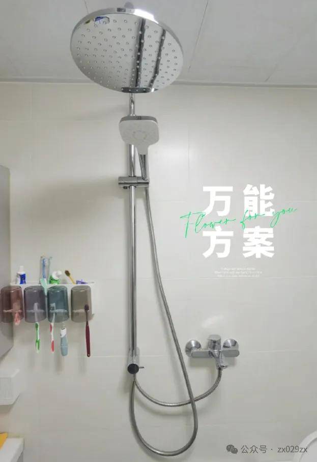 购买分体式花洒,也是可以的,混水阀位置固定不变,花洒可以高低左右,根据吊顶高度满足安装。