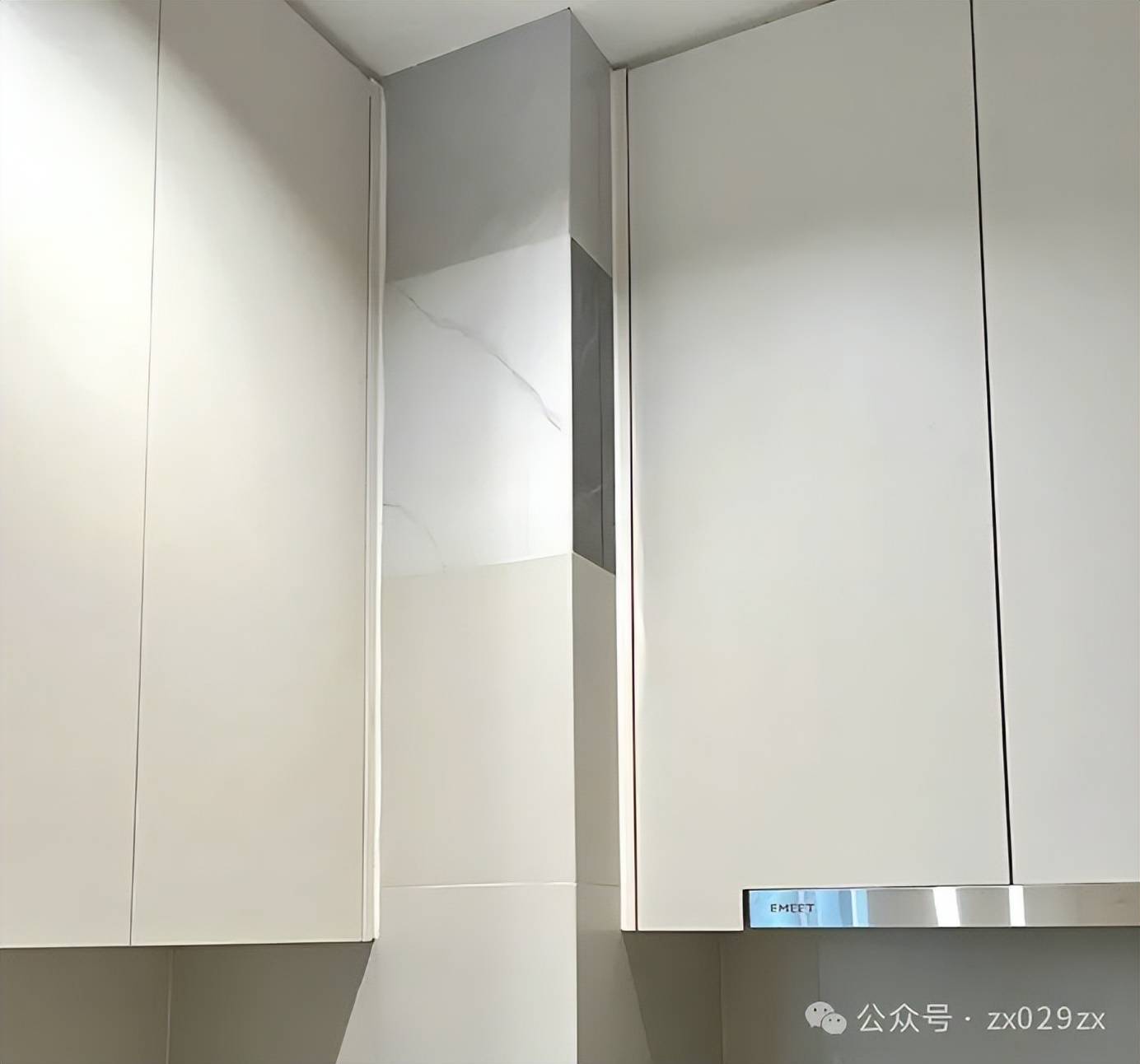 没有做侧面柜,为了好收口凹进去几公分,结果忽视了颜色的问题,加上高低不平就更加怪异。