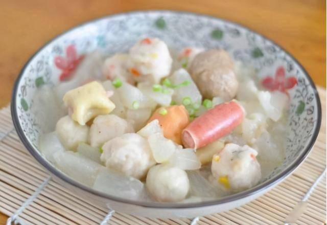 1.鱼丸是早就做好的,从冰箱拿出来解冻。