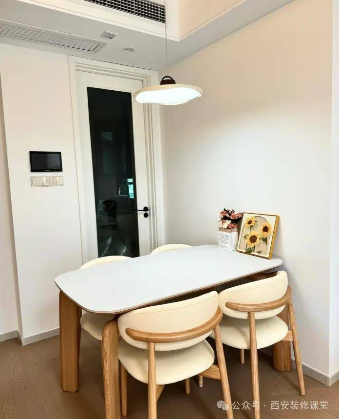 网友@奶油家:最好不要碰这种餐椅,软包范围太大,太容易脏了,特别是家里有孩子的,只要稍微蹭一蹭就黑一圈,而且压根擦不掉,时间久了压根看不到当初的本色了;弧度的靠背导致餐椅不用的时候无法完全塞进餐桌下方,靠近厨房位置导致过道非常狭窄。