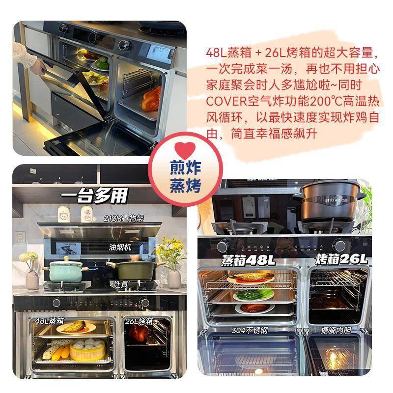 这款集成灶采用「旋钮智控」设计,将燃气灶、油烟机、蒸烤箱三大功能模块完美整合。不同于传统分体式厨电的繁琐操作,它的控制面板就像汽车中控台般简洁直观,即使是第一次使用的厨房新手也能快速上手。