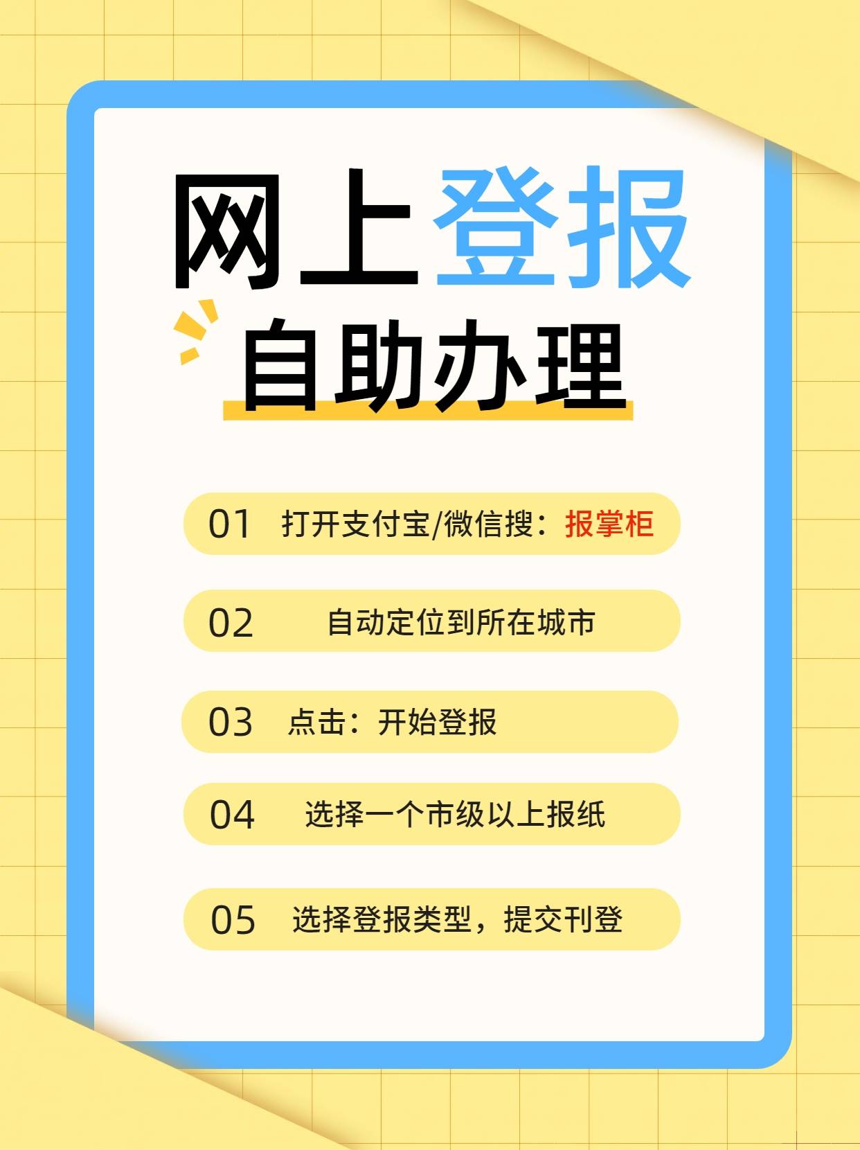 比如通过支付宝或微信搜索“报掌柜”小程序,按提示选择证件类型、填写遗失信息、确认刊登报纸即可。