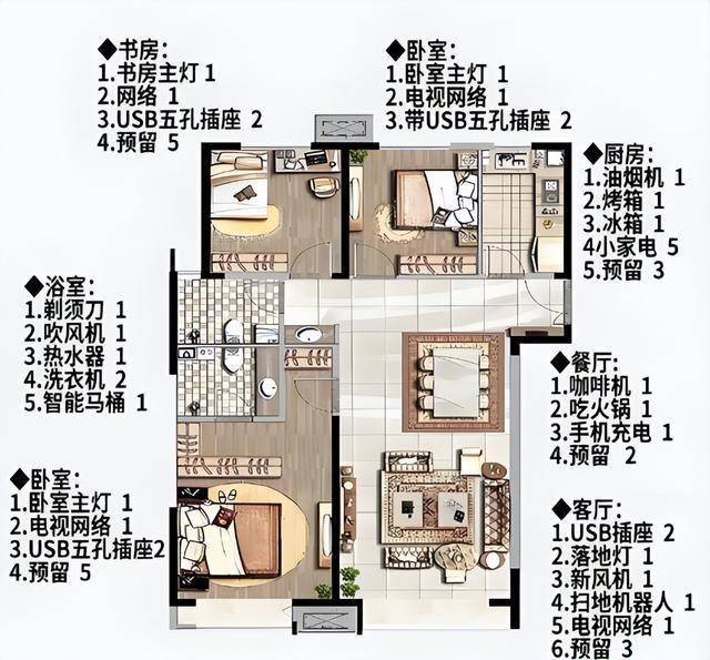 (提示:水电改造前,最后拿着这份清单,跟师傅一个个点位确认。这是为你自己未来十年的便利投资,最值得!)