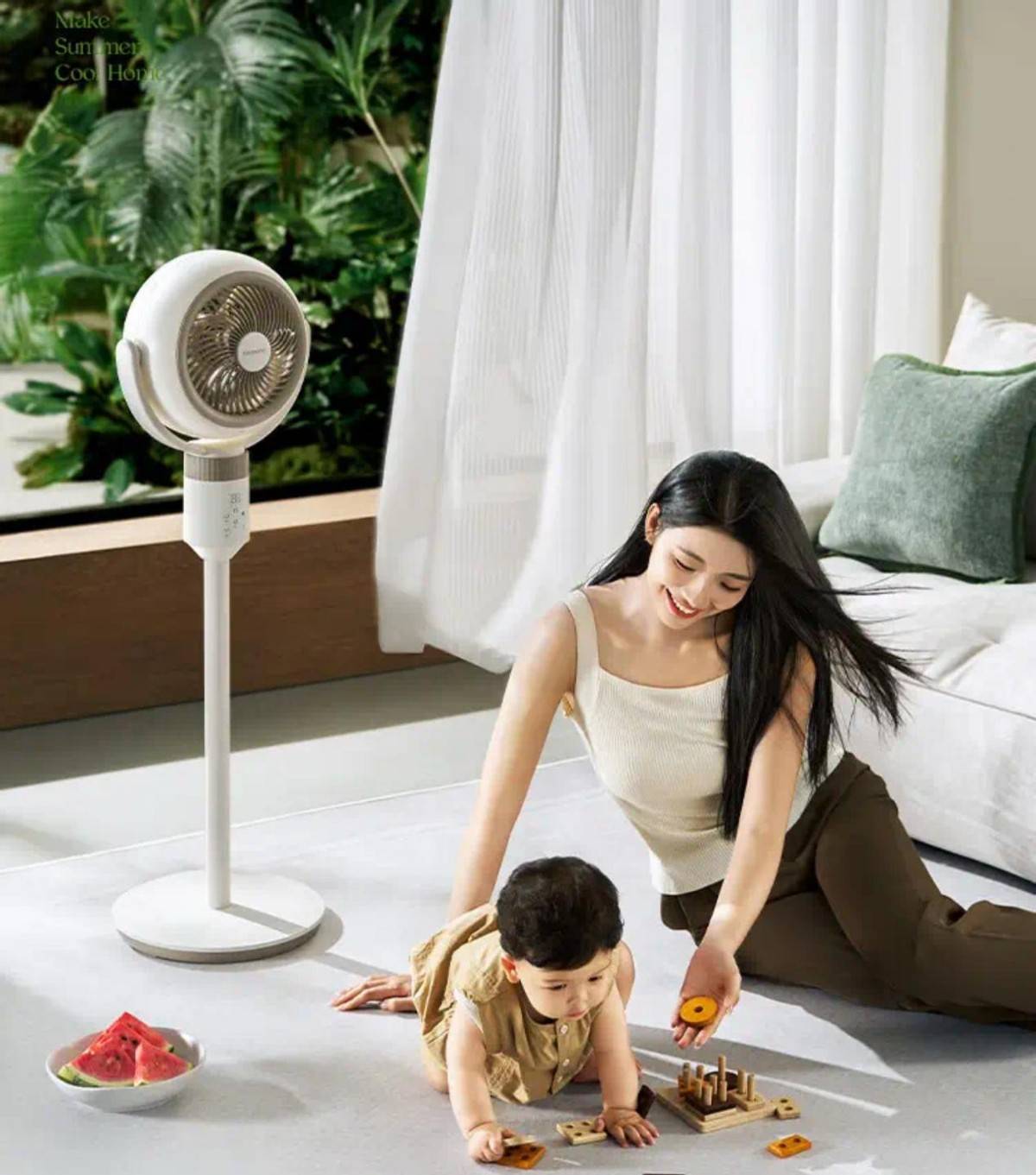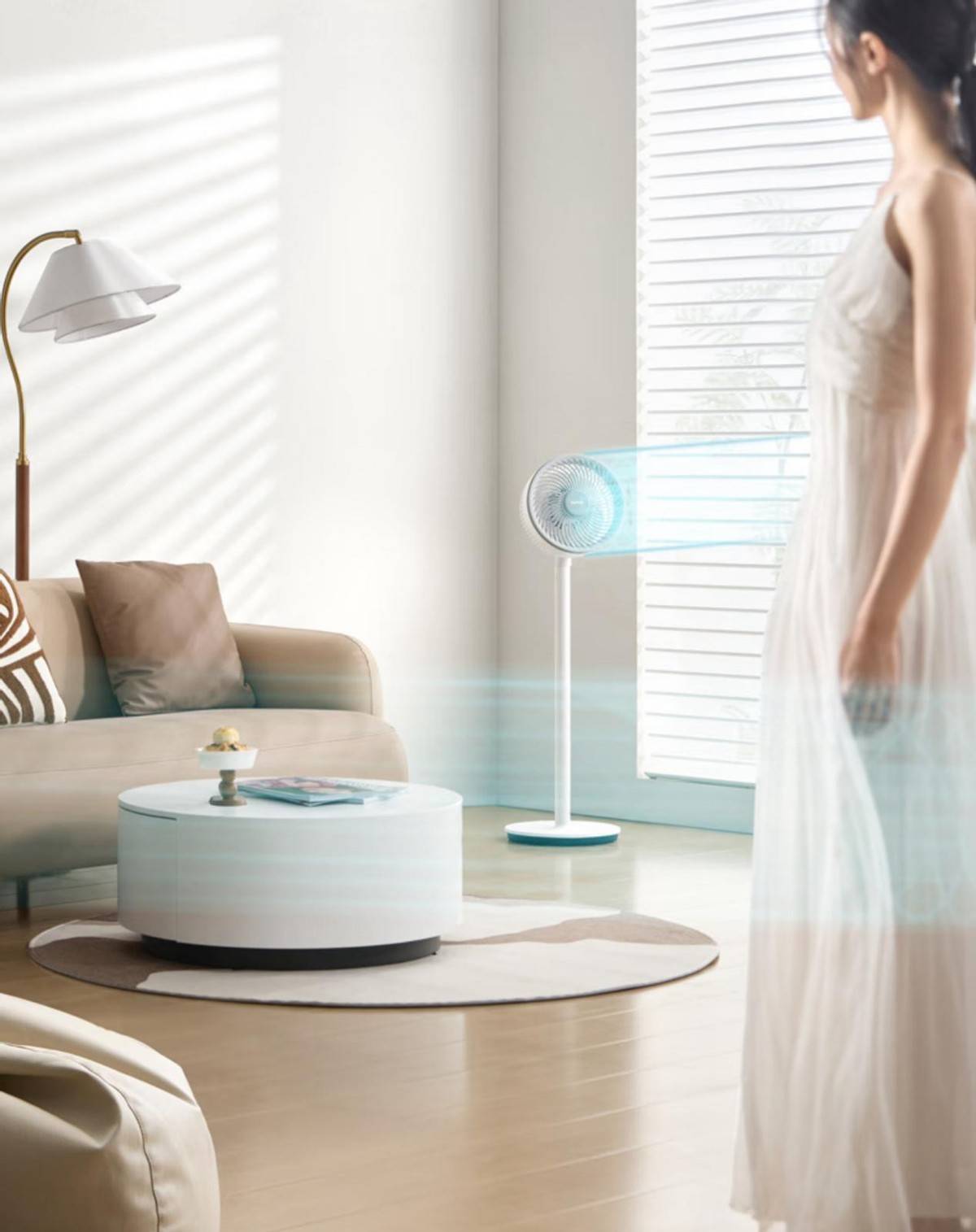 品牌走简约家居风格,产品设计能自然融入现代家居环境。材质选用进口环保塑料,搭配细腻的表面处理工艺,质感优良。搭载直流无刷电机,运行安静,噪音控制低,夜间使用体验出色。可根据室内温度自动切换风速,扇叶设计模拟自然风,风感柔和不生硬。吹风支持左右扭头及上下调节,空气循环覆盖均匀。