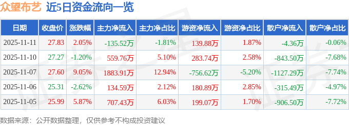11月11日的资金流向数据方面,主力资金净流出135.52万元,占总成交额1.81%,游资资金净流入139.88万元,占总成交额1.87%,散户资金净流出4.36万元,占总成交额0.06%。