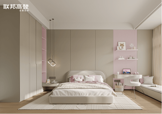 传统的独立柜体虽然方便,但往往会占用宝贵的卧室面积,让房间显得拥挤,清洁也不方便。关于儿童房怎么装修最好看,联邦高登建议可以考虑将床头柜与床体或墙面做一体化设计。这种设计思路不仅能优化空间利用,让房间更整洁宽敞,还能通过流畅统一的视觉效果提升整体美感,让儿童房既实用又好看。