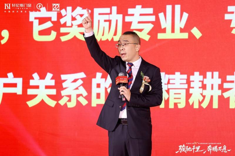 上午会议渐入高潮,轩尼斯门窗董事长曾庆伟登台作战略指引与未来展望。曾董以故事叙述传递宏阔视野与坚定信念,带领全体与会者洞见行业趋势与时代机遇。他的话语铿锵有力,字字指明方向,句句凝聚共识,激励轩尼斯门窗人以“骏马”的锐意开拓前程,以“奔腾不息”的精神深耕脚下,共同执笔书写更加壮丽辉煌的新篇章。