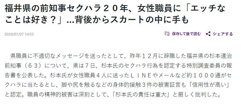 另一方面,他面临着一个极其复杂的烂摊子:前任知事因恶劣的性骚扰丑闻引咎辞职,福井县民众的信任度已跌至谷底。