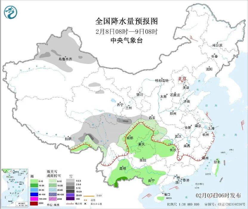 今天冷空气将继续影响我国南方部分地区,其中,江南东部、华南、西南地区东部等地仍将有4~6℃降温。2月8日凌晨最低温度0℃线将南压到福建北部至湖南北部一带。