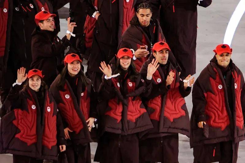 一己之力让lululemon 在上届冬奥会上红遍大江南北的加拿大代表队,此次依然身穿同品牌装备,此次开幕式装备采用分层保暖设计,帮助运动员灵活应对寒冷且多变的气温环境。整体造型以深红色为主色调,辅以亮红色细节,并巧妙融入枫叶元素,生动彰显加拿大的国家精神与文化。