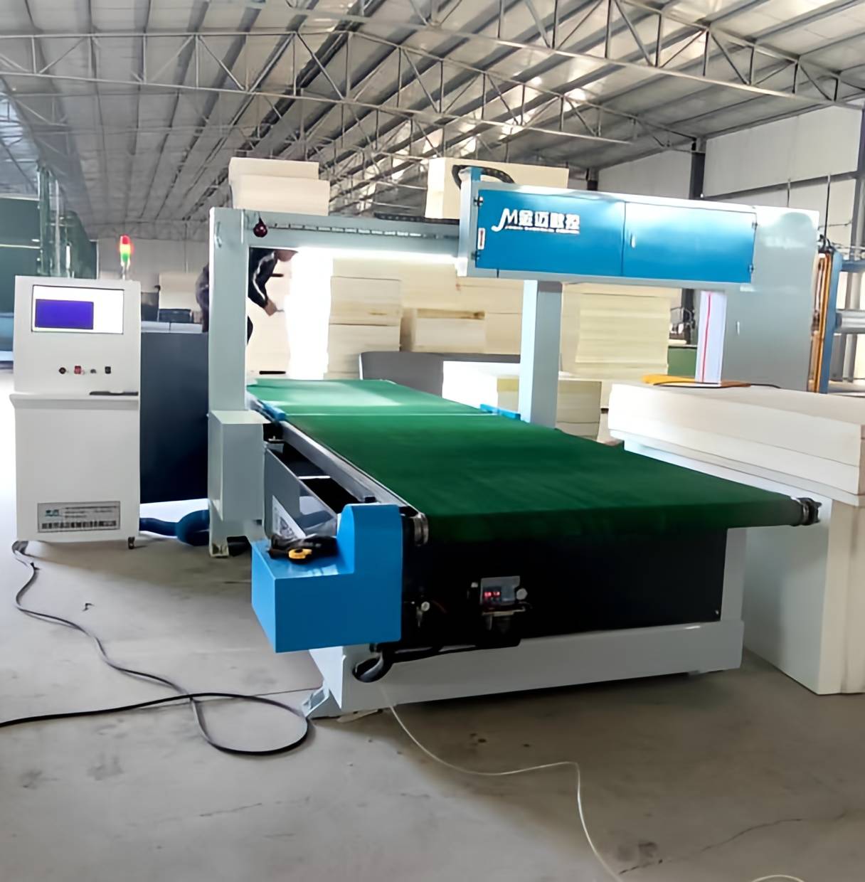 发泡开料机发泡开料机加工时,将大尺寸发泡板材吊装至送料台,调整自动纠偏装置防止板材偏移。设定开料宽度与厚度参数,启动设备后,多组合金钢圆刀同步分切,压料辊辅助固定防止翘边。分切后的发泡板经输送带传送至收料区整齐堆叠,废料自动卷入收集箱,全程自动化,每小时可分切300张板材,适合建材厂规模化开料作业。 金迈线锯机金迈线锯机加工前,启动设备自检程序,检查锯丝张力与传动系统状态。将材料放在真空吸附工作台,导入CAD切割图纸,系统自动生成最优路径。启动设备后,精密数控系统驱动锯丝精准切割,重复定位精度±0.05mm,切割过程中实时监控,异常时自动报警。切割完成后自动下料,适合中高端软性材料异形件高精度加工。