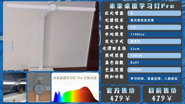 同时47厘米的大尺寸发光面配合直下式发光方式,能够提供1190lux的中心照度,轻松覆盖1.2米宽的桌面区域。在光效上它是采用了固定4000K的舒适中性光配合Ra96的显色指数,保证了日常阅读和学习的光线质量。
