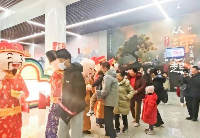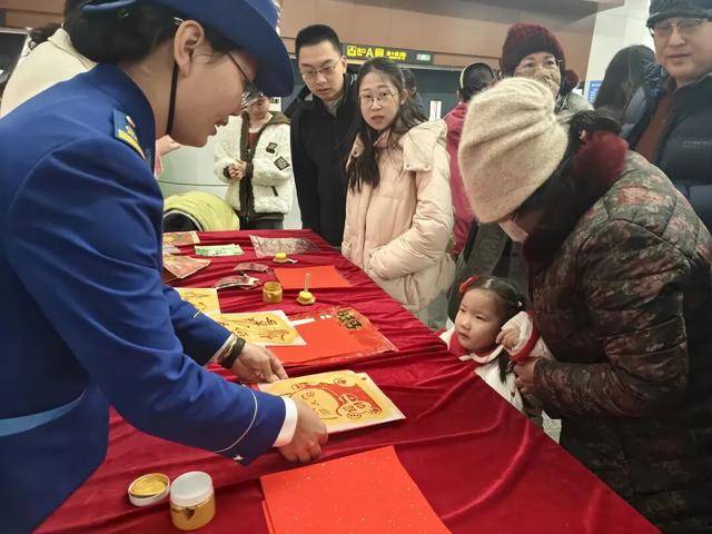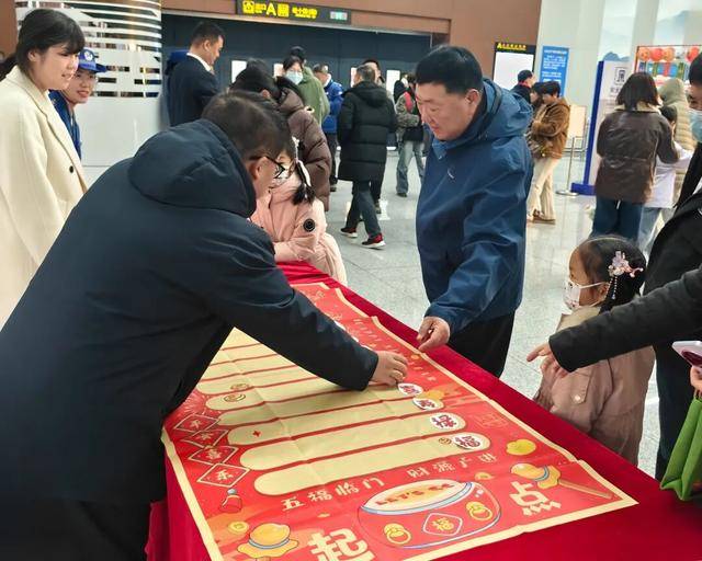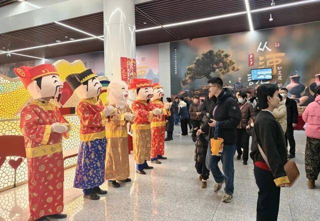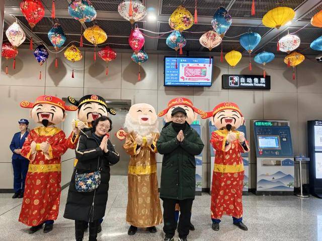 活动现场年味浓郁,乘客们纷纷举起手机,与可爱的福星人偶合影互动。一张张笑脸,一段段视频,将车站里的节日欢乐不断传递、扩散。