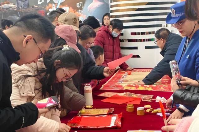“福星区”,非遗拓印工作坊吸引了不少乘客驻足,亲手拓印一幅吉祥纹样,留下一份独特的新春纪念。