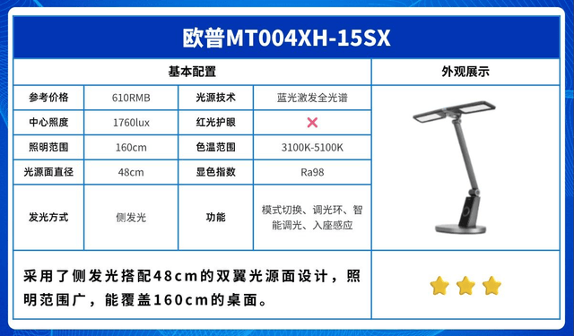 学生护眼台灯推荐第八名:欧普MT004XH-15SX(推荐指数:⭐⭐⭐)