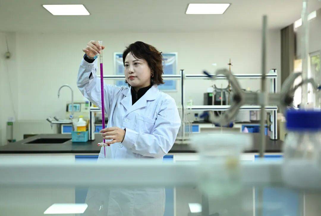▲2月18日,大渡口区丰收坝水厂,化验室李敏正在检测出厂水质。她已值守春节19年。记者 张锦辉 摄