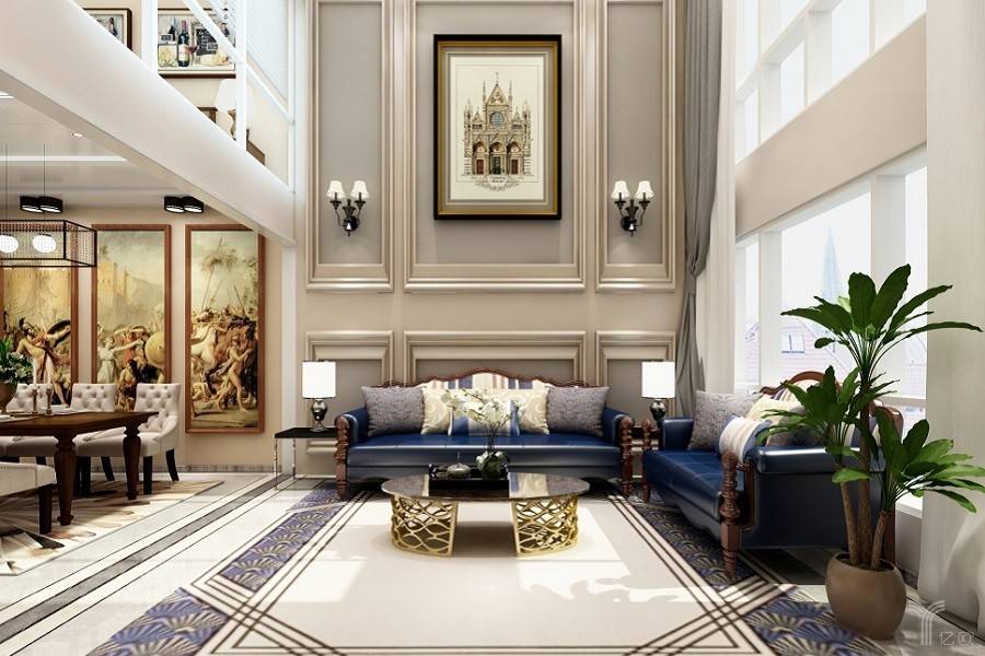 客厅以实木色为主,显得沉稳大气。一扇大面积落地窗,不仅为室内提供充足光照,还能让人一眼看到庭院里的绿色植物,景色十分宜人。原木楼梯比一般楼梯更有质感,尽显品位。中间吊挂的水晶吊灯,如点点星光,斑斑驳驳地洒在楼梯上,温馨又自然。会客室里的原木博古架高贵气派,珍贵古玩能在上面妥善保存。此外,还设置了桌球台,闲暇时可与好友娱乐一番。