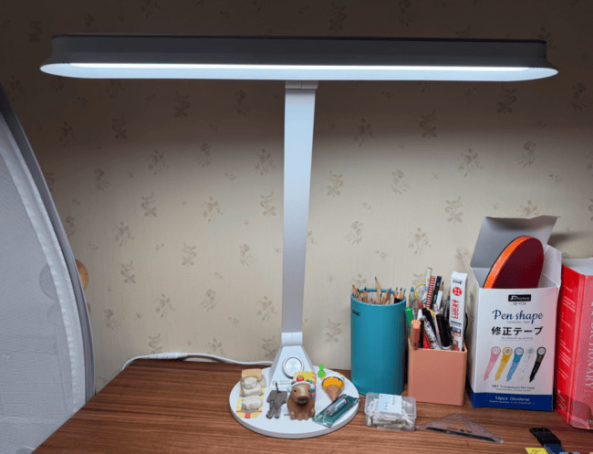 不过,这款台灯采用直下式发光,长时间近距离使用可能出现轻微眩光,且灯体结构较为厚重,调节角度时灵活性一般,移动不太方便。结合其定位与价格,比较适合桌面空间较大、预算较为充足的家庭选择。