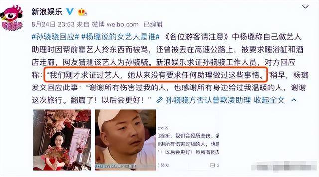 消息一出,全网哗然,孙骁骁的经纪公司赶紧出来发声明,否认了所有指控,说从来没有要求助理做过这些事,甚至还有孙骁骁的现任助理出来发文,说孙骁骁一直把工作人员当自己人。