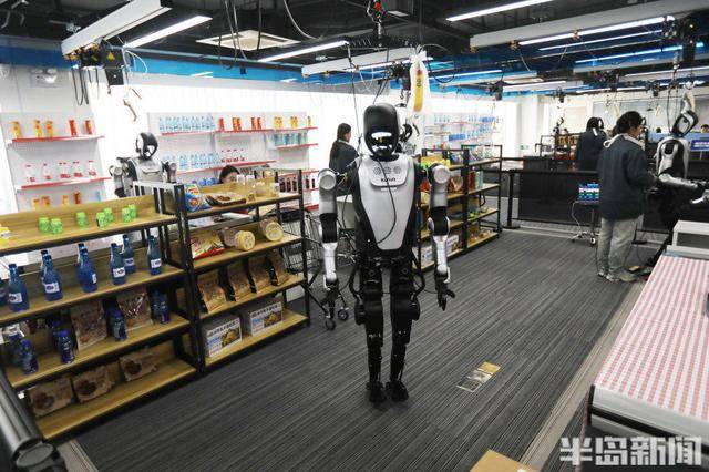 在青岛有个人形机器人训练基地,工作人员专门给机器人搭了各种模拟生活和工作的场景。模拟厨房里,老师带着机器人练炒菜、洗碗、切菜备菜这些家务活;模拟超市里,机器人能熟练整理货架上的货,还能给 “顾客” 递东西;模拟流水线上,机器人又快又准地分拣快递包裹。