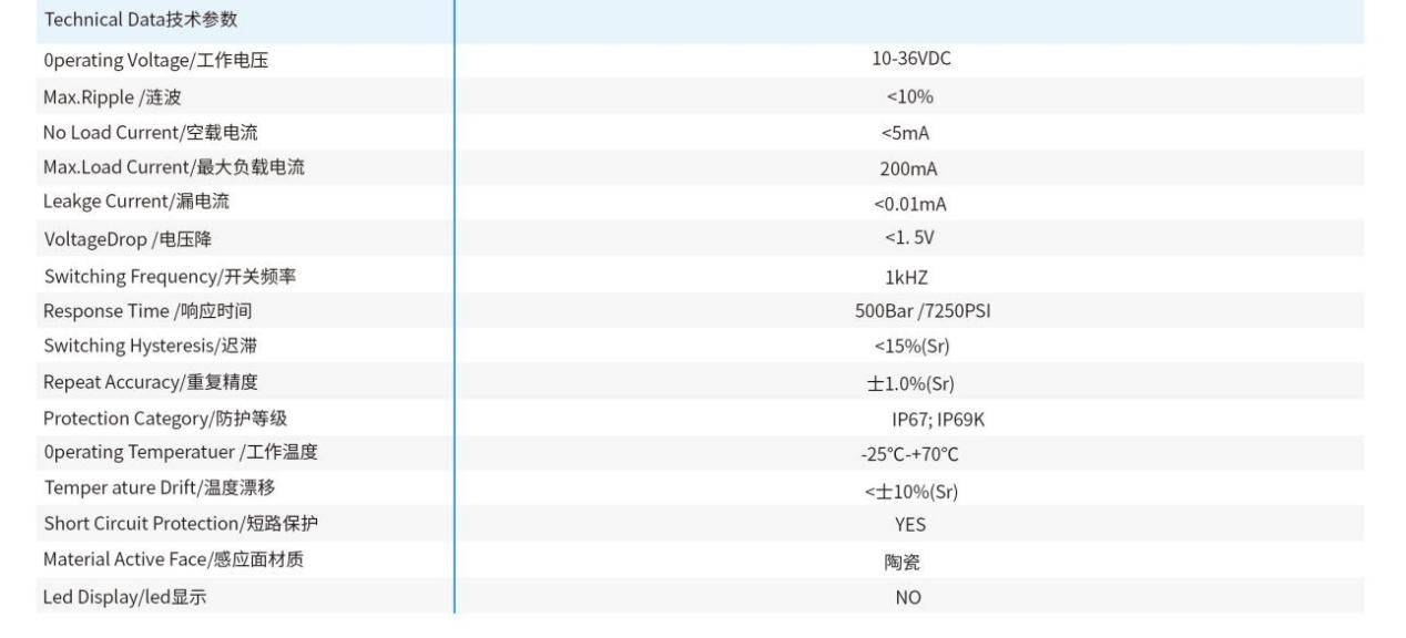 1. 耐高压性能:这些接近开关可承受0-600bar的高压力,适合各种高压工况条件。
