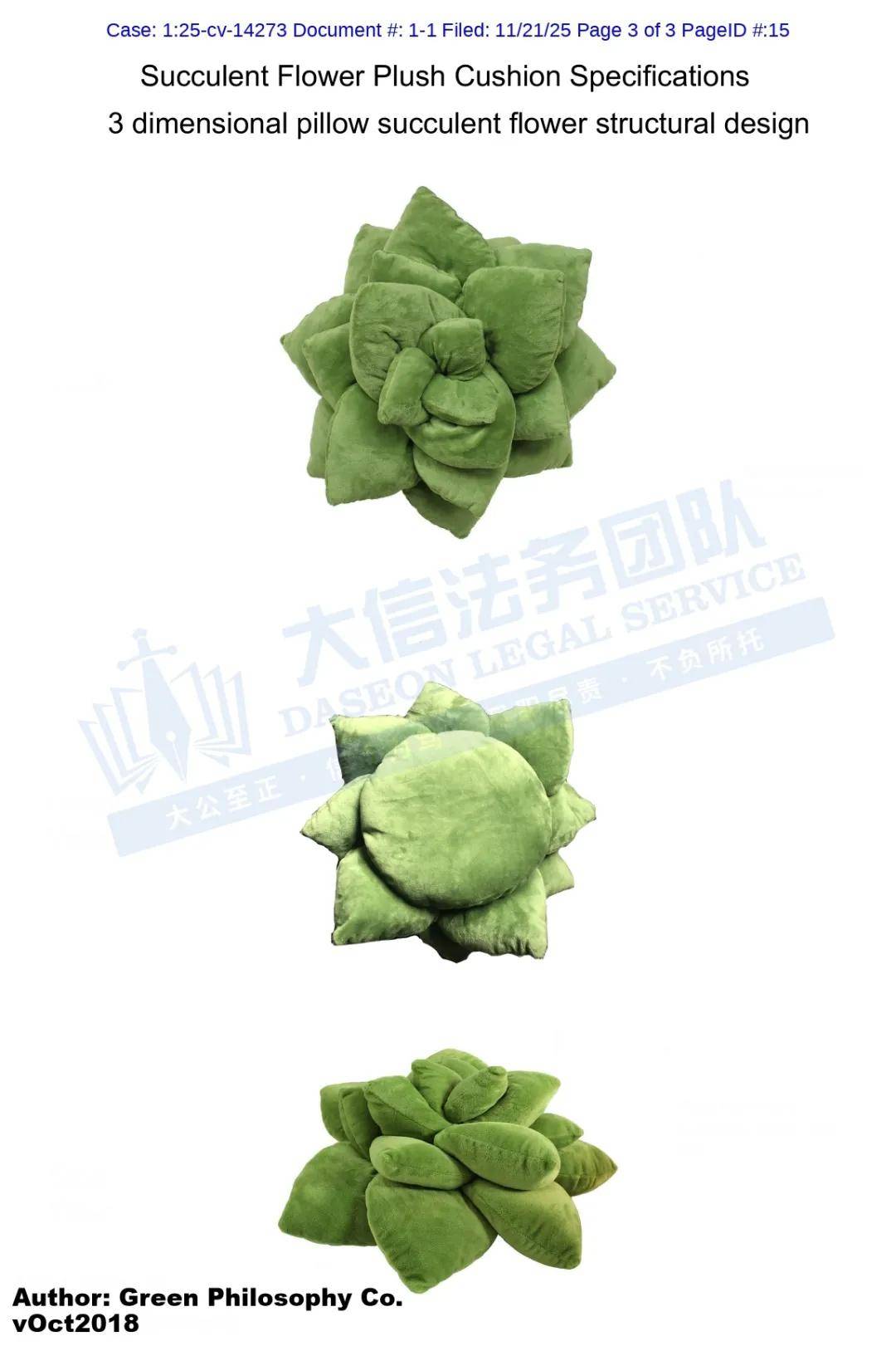 此案为多肉抱枕的版权维权,版权号:VA 2-167-392侵权风险极高!以下是维权具体信息,未经授权不得擅自使用,跨境卖家尽快检索下架,否则会有TRO侵权风险!