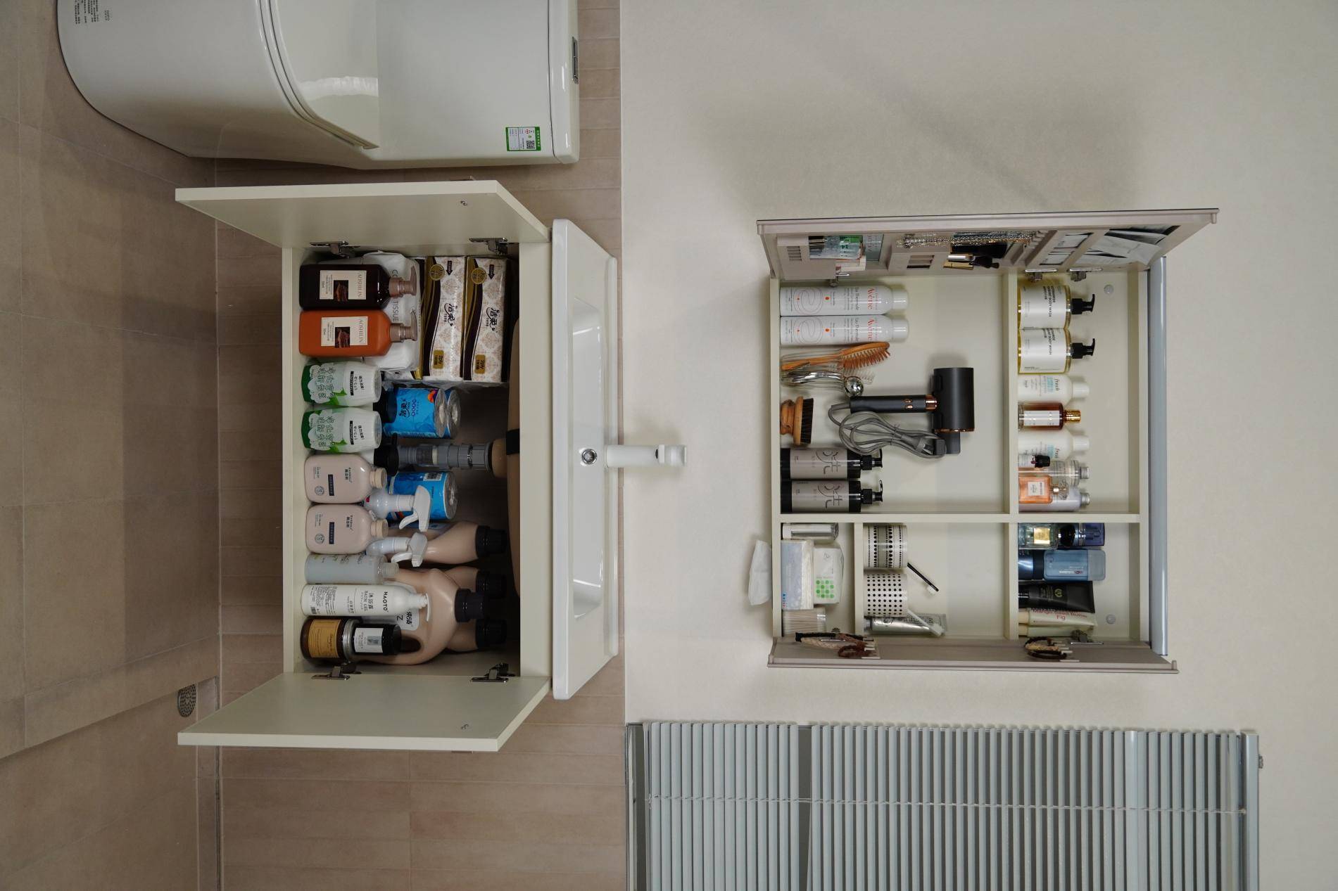 检查收纳分区是否科学:优质的浴室柜会科学规划空间,区分高频使用区和囤货区。