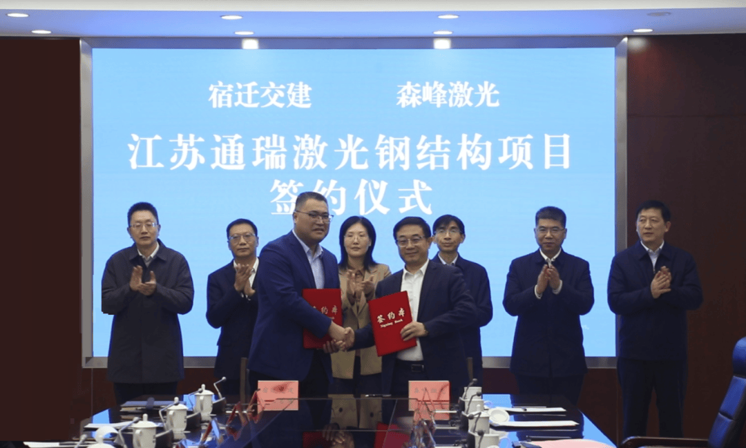 11月27日,江苏通瑞激光钢结构项目成功签约,该项目依托宿迁交建基建市场深耕与森峰激光先进技术研发的优势,聚焦激光与钢结构技术深度融合,以打造绿色建造与智能制造示范项目为目标,规划建设36000平方米的现代化生产基地,计划引进4条智能化生产线、20台激光切割设备和20台大吨位行车,形成年产200台激光设备、3万吨钢结构的产能规模。