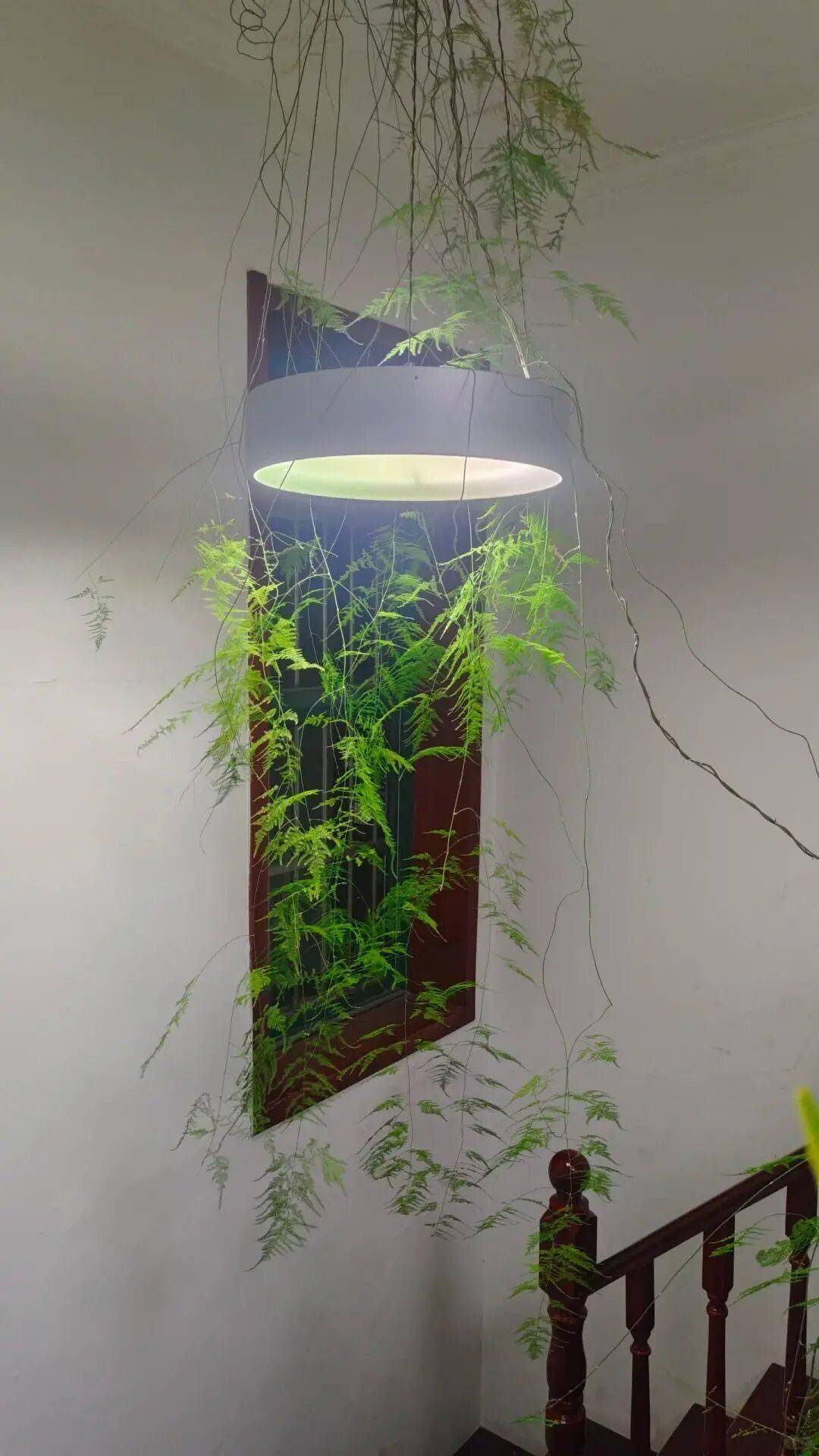 可南京一位小姐姐的文竹,直接颠覆认知:养了 10 年,顺着楼梯爬到二楼,还绕着吊灯缠了一圈,翠绿的枝叶垂下来像 “绿瀑布”,网友看了直呼:“不得了,你家文竹成精了!”
