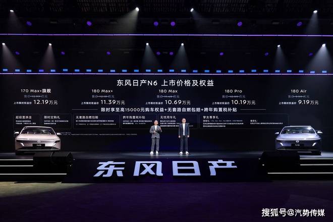 12月1日上市的东风日产N6,推出180Air、180Pro、180Max、180Max+、170Max+旗舰共5个版本,售价区间为9.99万—12.99万元,叠加超级置换金与限时定购礼后,上市限时权益价为9.19万—12.19万元。