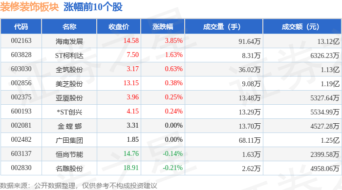 证券之星消息,12月2日装修装饰板块较上一交易日下跌0.63%,*ST东易领跌。当日上证指数报收于3897.71,下跌0.42%。深证成指报收于13056.7,下跌0.68%。装修装饰板块个股涨跌见下表: