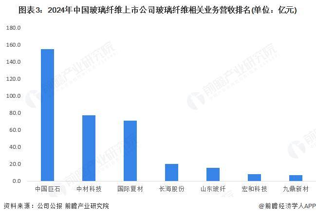 图表3:2024年中国玻璃纤维上市公司玻璃纤维相关业务营收排名(单位:亿元)