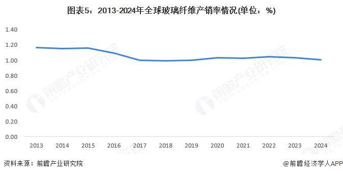 图表5:2013-2024年全球玻璃纤维产销率情况(单位:%)