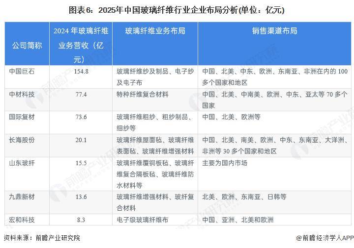 图表6:2025年中国玻璃纤维行业企业布局分析(单位:亿元)