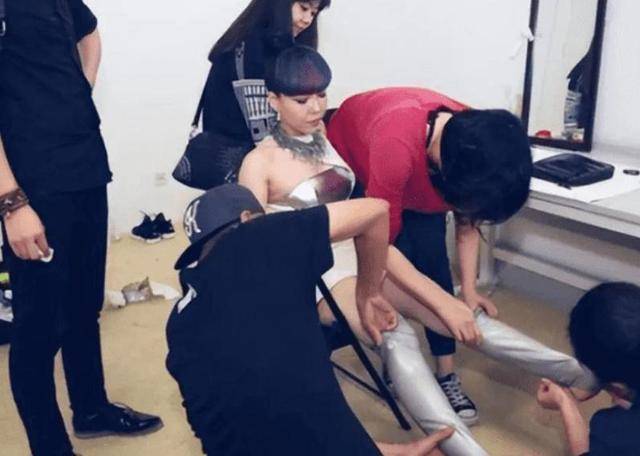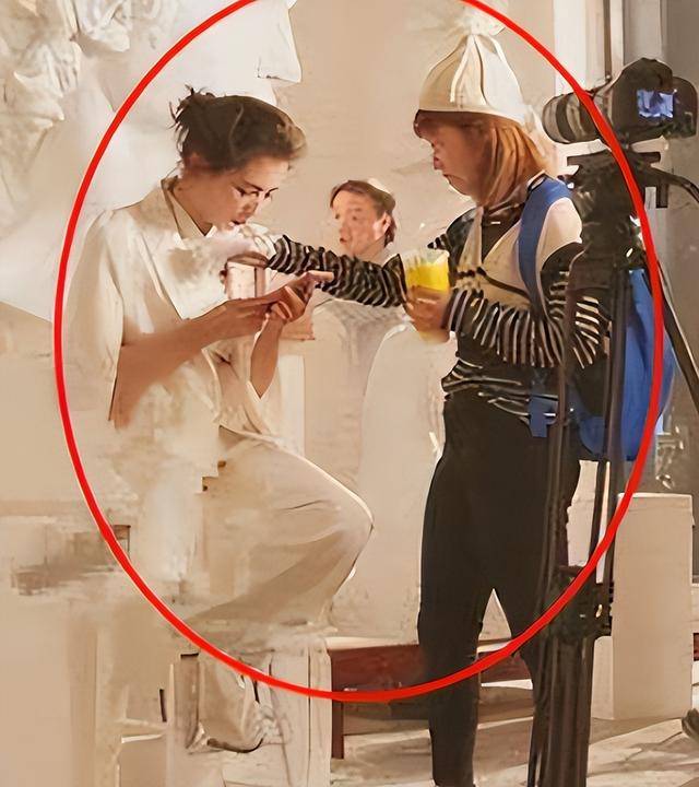 她在一次拍摄中途休息的时候被网友拍摄了一张照片,也正是因为这一张照片把她推到了风口浪尖上。