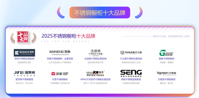 此次榜单以 “品牌力综合指数” 为核心评估维度,融合市场占有率、产品创新力、消费者满意度等多维度大数据分析,是家居建材行业兼具公信力与影响力的权威榜单之一,其结果堪称行业品质与实力的 “风向标”。而玖奈家居的上榜,正是行业对其在不锈钢橱柜赛道持续深耕的精准认证。