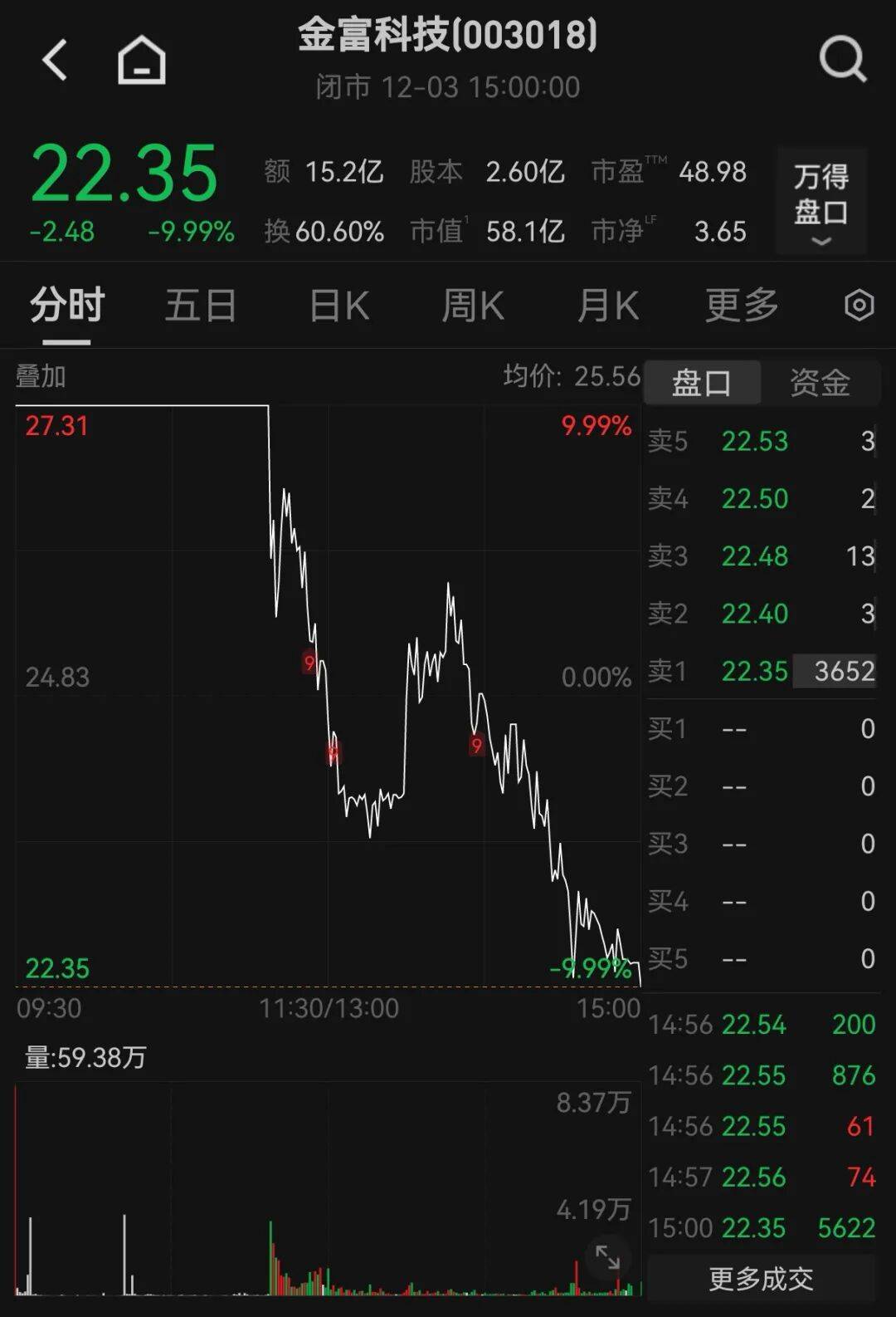 个股方面,金富科技早盘一度封涨停,盘中下跌尾盘触及跌停,上演“天地板”。