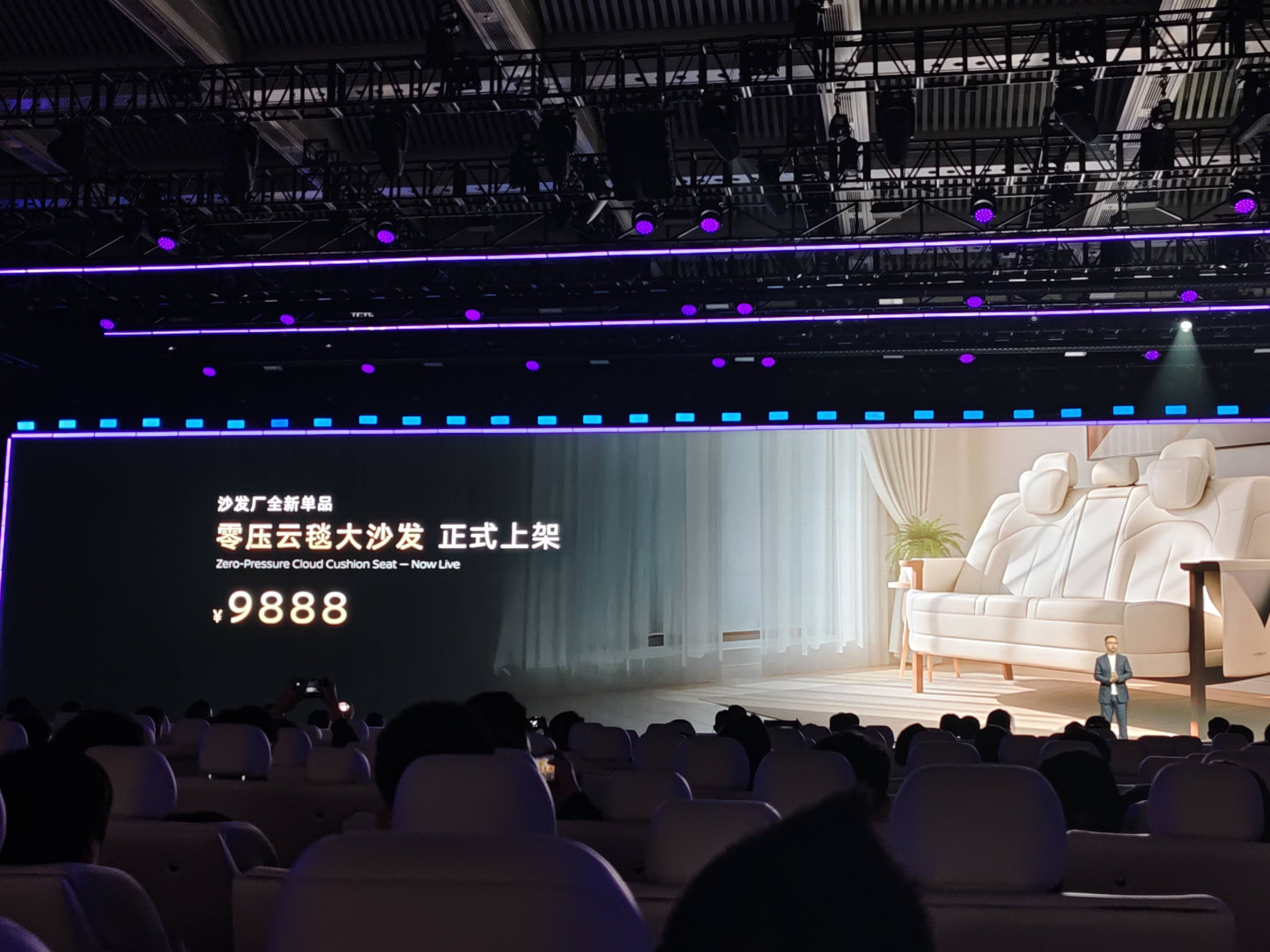 为了突出“大沙发”的舒适,日产这次发布会现场摆出500台同款零压云毯沙发布置会场,让车主和媒体体验新车的舒适性。