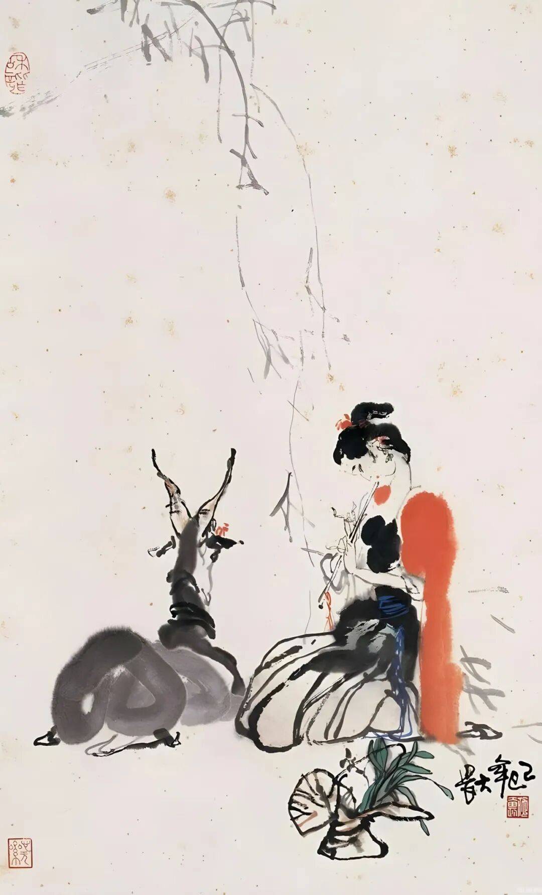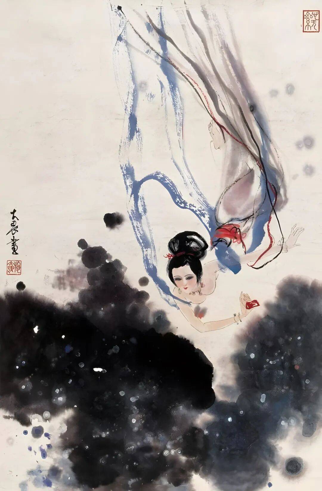 到了现当代,大多数名人画家也都倾向于将仕女表现得清瘦、优雅、纤细。