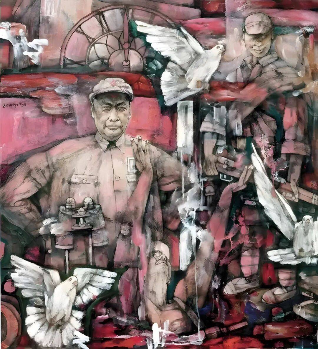 没有专业学习绘画的条件也就罢了;不巧的是,初中毕业的他,当时被分配到了一个建筑公司当一名油漆工人,每天都是重复些机械工作。