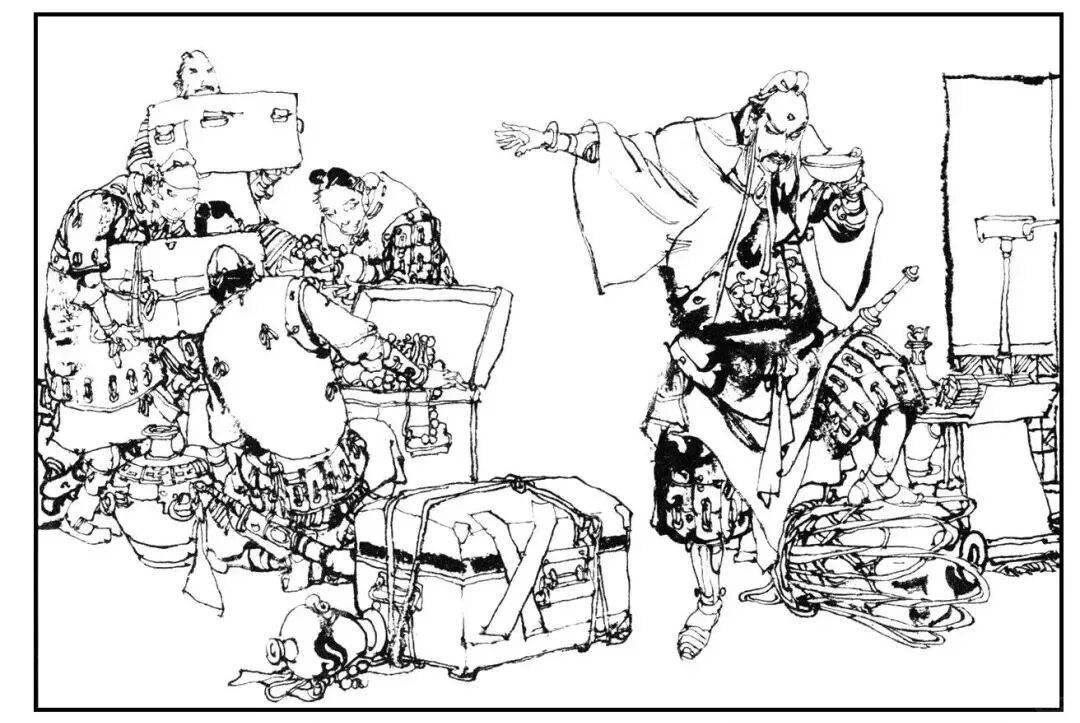 单单运用线条,他就能为我们编织出一个个场面宏大而层次错落的历史人文景观。