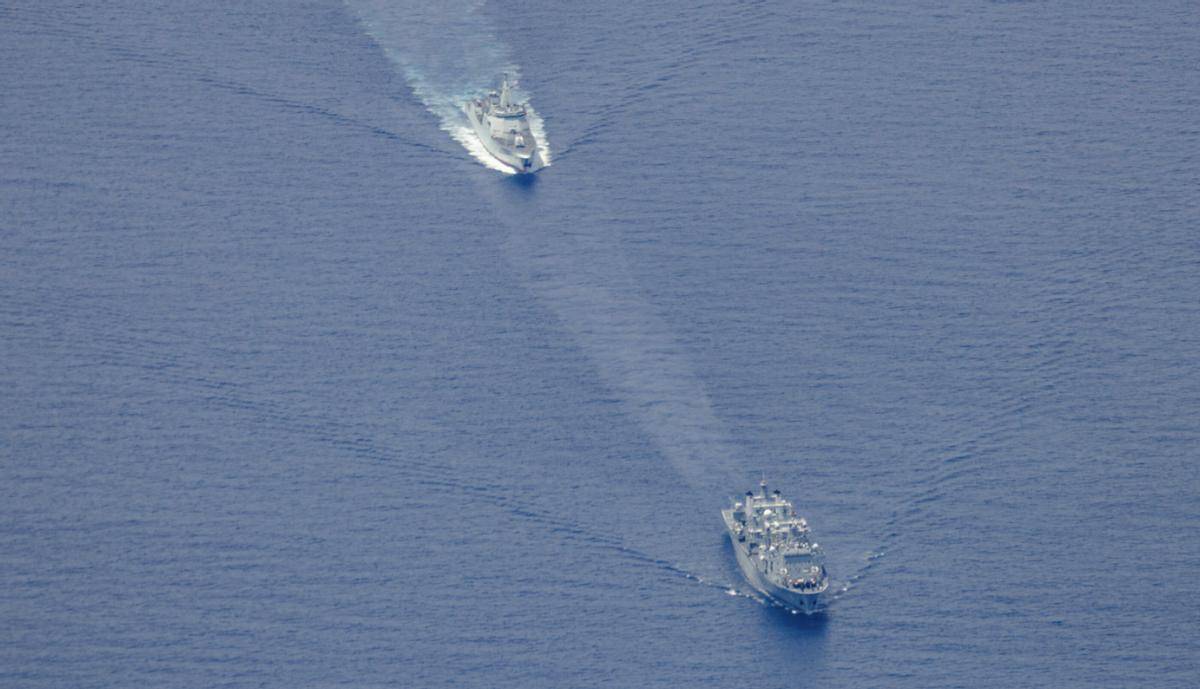 在2025年9月25日,“奥特亚罗瓦”号补给舰与日本“涟”号驱逐舰、澳大利亚“悉尼”号驱逐舰一起过航台湾海峡,2025年11月5日,该舰第二次闯台海,这不是什么路过,而是有意挑衅。针对这一情况,中国人民解放军不仅派出7艘战舰沿途押送,这是新西兰国防部的说法,“受到7艘军舰的全程跟监警戒”,还在当场遭到了模拟打击,当时有歼-16战斗机在台湾海峡活动,这是台军的说法。