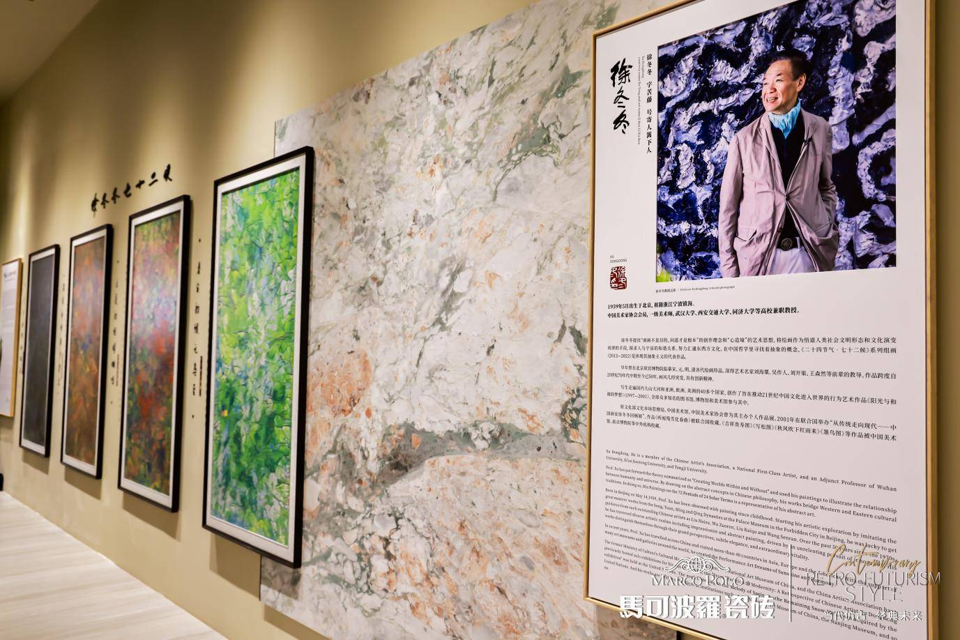 【搜狐家居】:在展位中,我们看到了由徐冬冬教授作品衍生的瓷壁画,这一跨界合作非常亮眼。马可波罗是如何思考将文化艺术与瓷砖产品结合的?