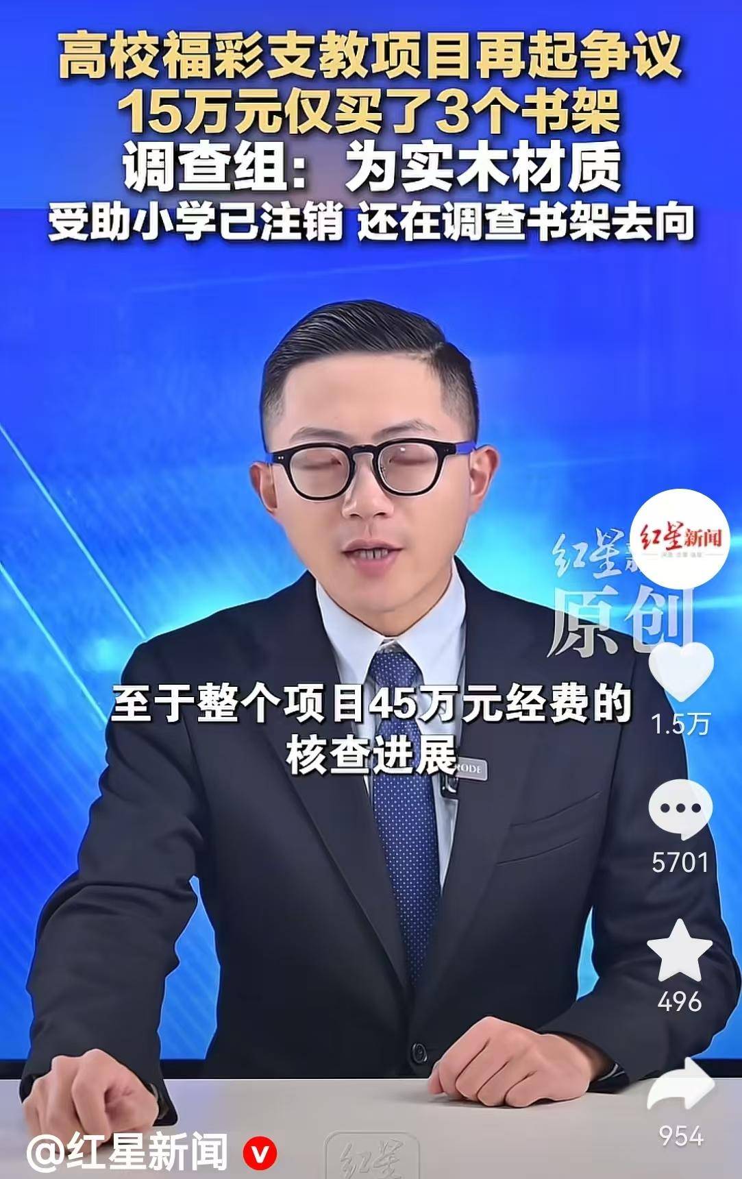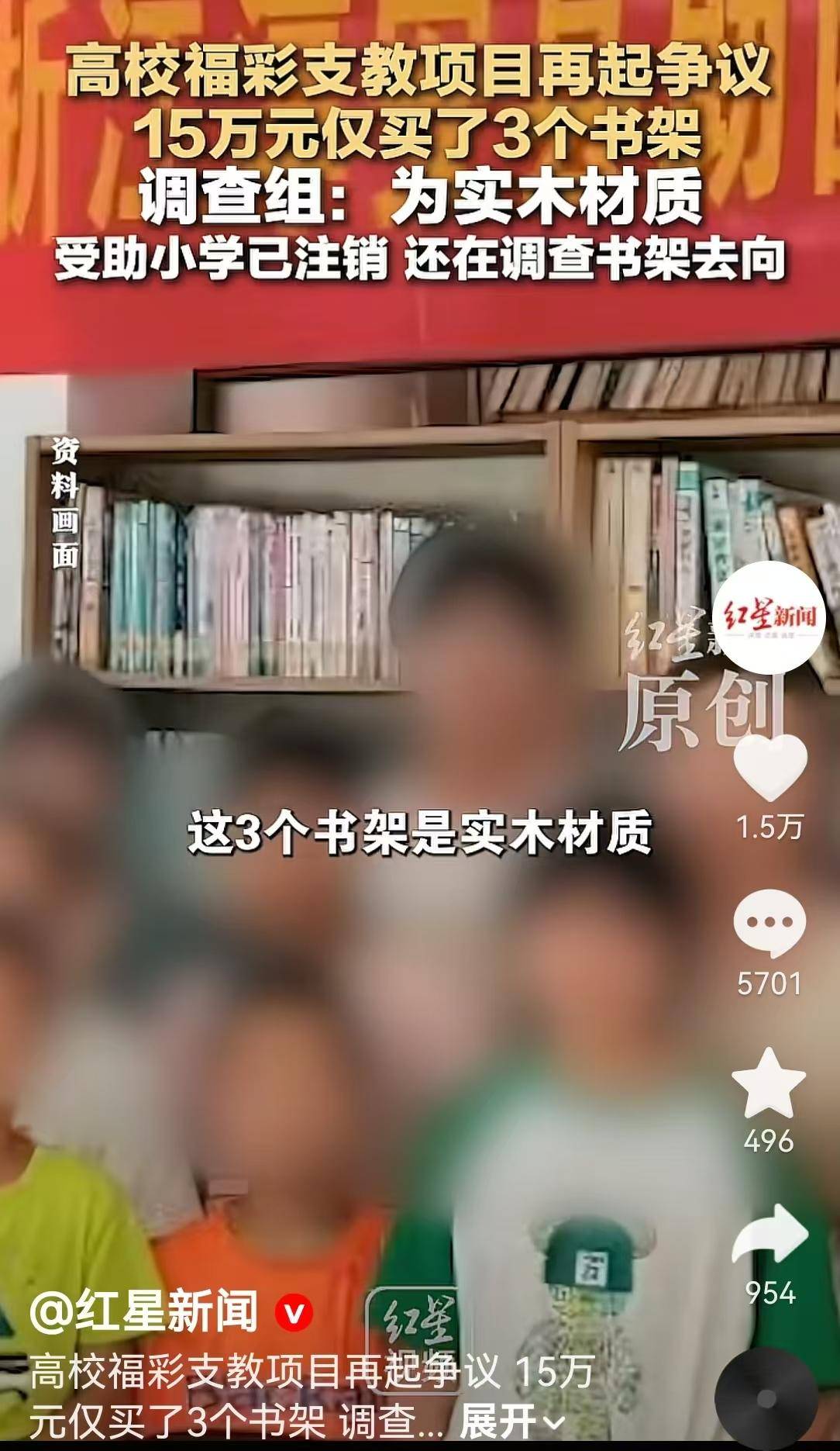 这样的实木书架,值不值5万元每个,大家自行平判?相信终究会水落石出的。毕竟这件事到这里还没有完。因为调查组始终没有见到书架实物,现在3个书架去向不明。为何会这样呢?不应该在学校吗?