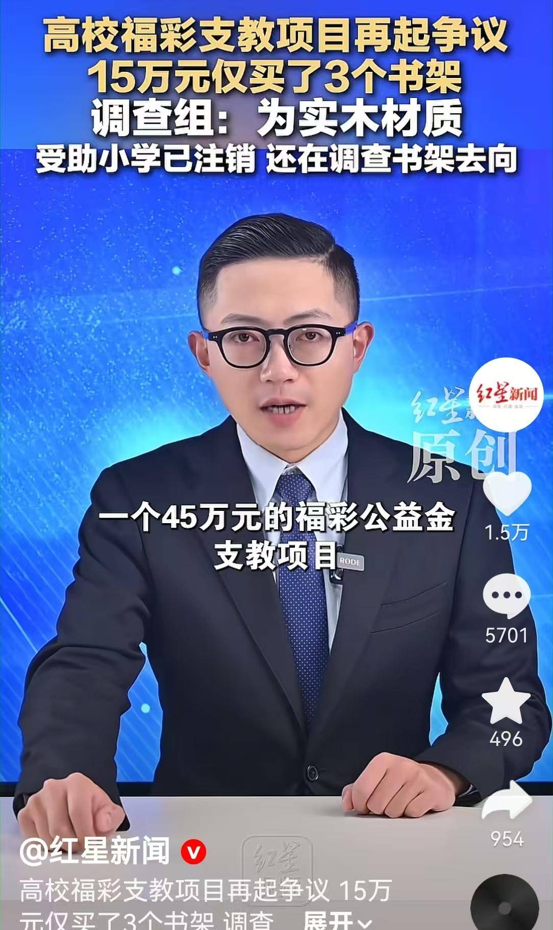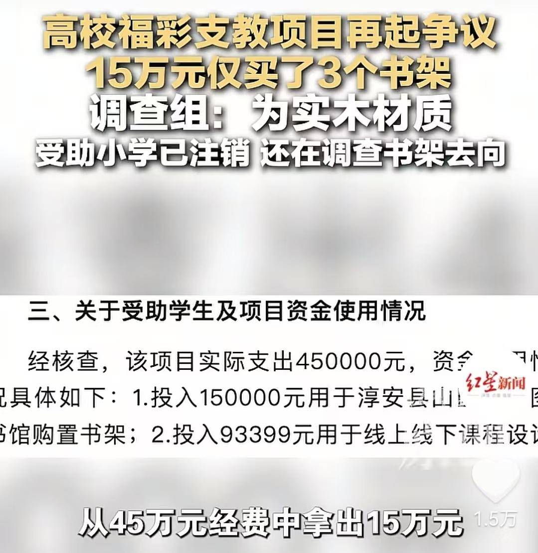 在杭州师范大学,公布的受助学生资金使用情况时,竟然有一项是花了15万,买了仅3个书架。到底是怎样的书架?为何如此贵?简直就是“天价书架”。