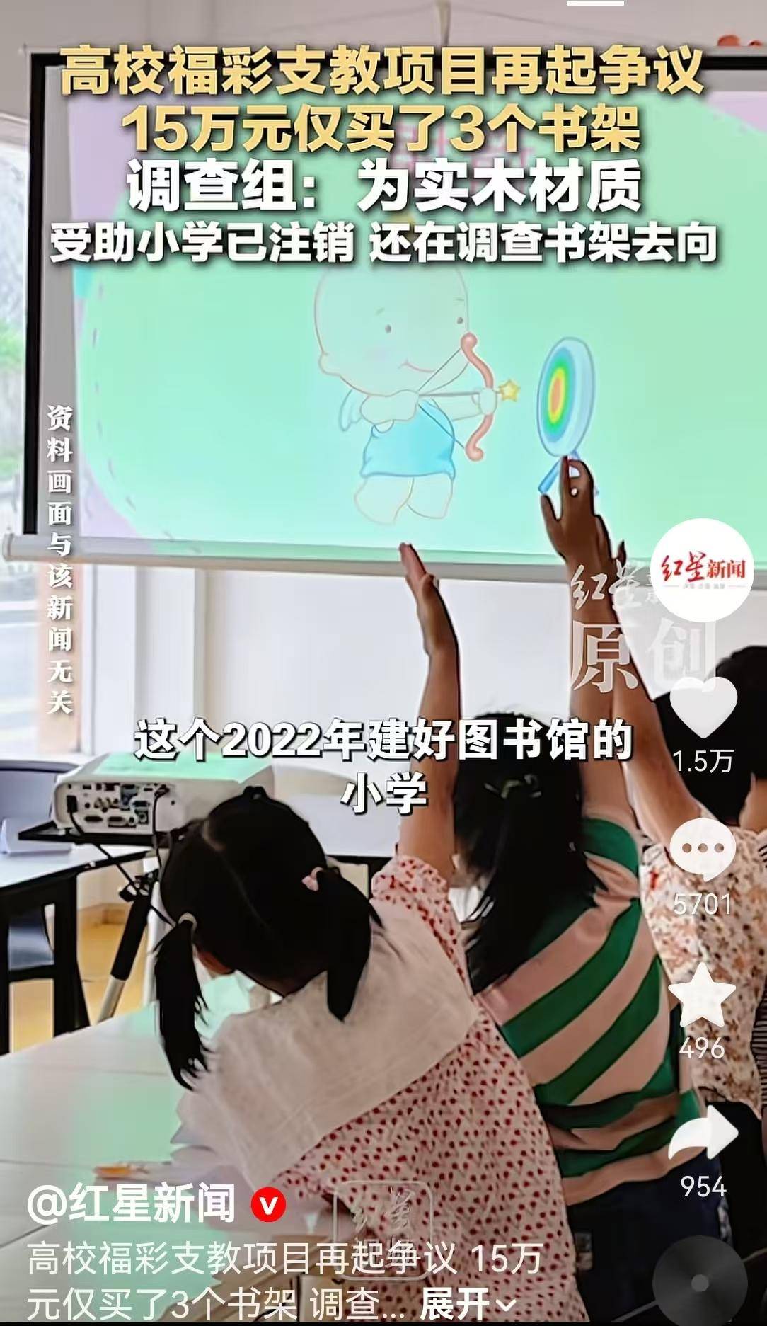 针对网友的质疑,杭州师范大学的调查组人员回应说,他们向相关执行人了解情况时,被告知这三个书架,是一所新建的小学提出的要求,要让购买实木材质的书架。