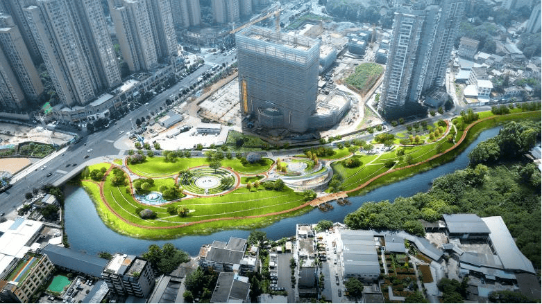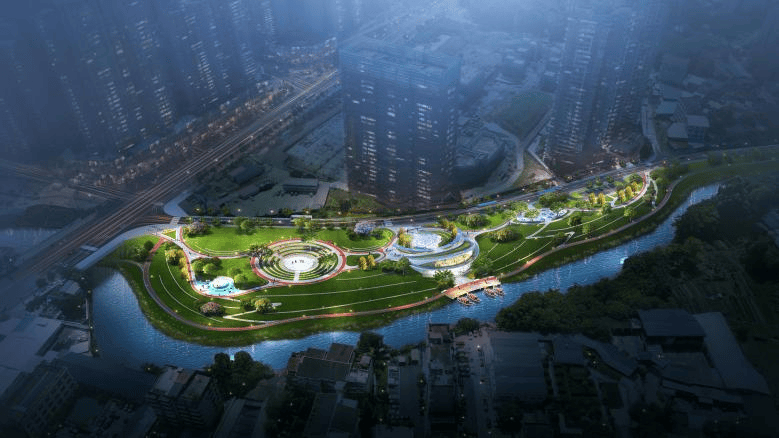 蟠龙公园项目位于乐山市市中区蟠龙片区,规划面积约25.24亩,以竹公溪流域综合治理为契机,通过公园系统的一体化打造,构建昼夜联动的竹公溪文化走廊。